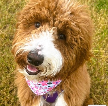 Meet Charlee, our adorable 8-month-old goldendoodle puppy! Born on May 10th, 2025, she was welcomed into her new home on July 4th, 2025. That day was memorable; while fireworks lit up the sky and echoed throughout the town, Charlee surprised us by not barking once! Her calm demeanor amidst the chaos was a clear sign that she was a keeper! Charlee is not only sweet and playful but also quite intelligent, quickly learning new commands and tricks.